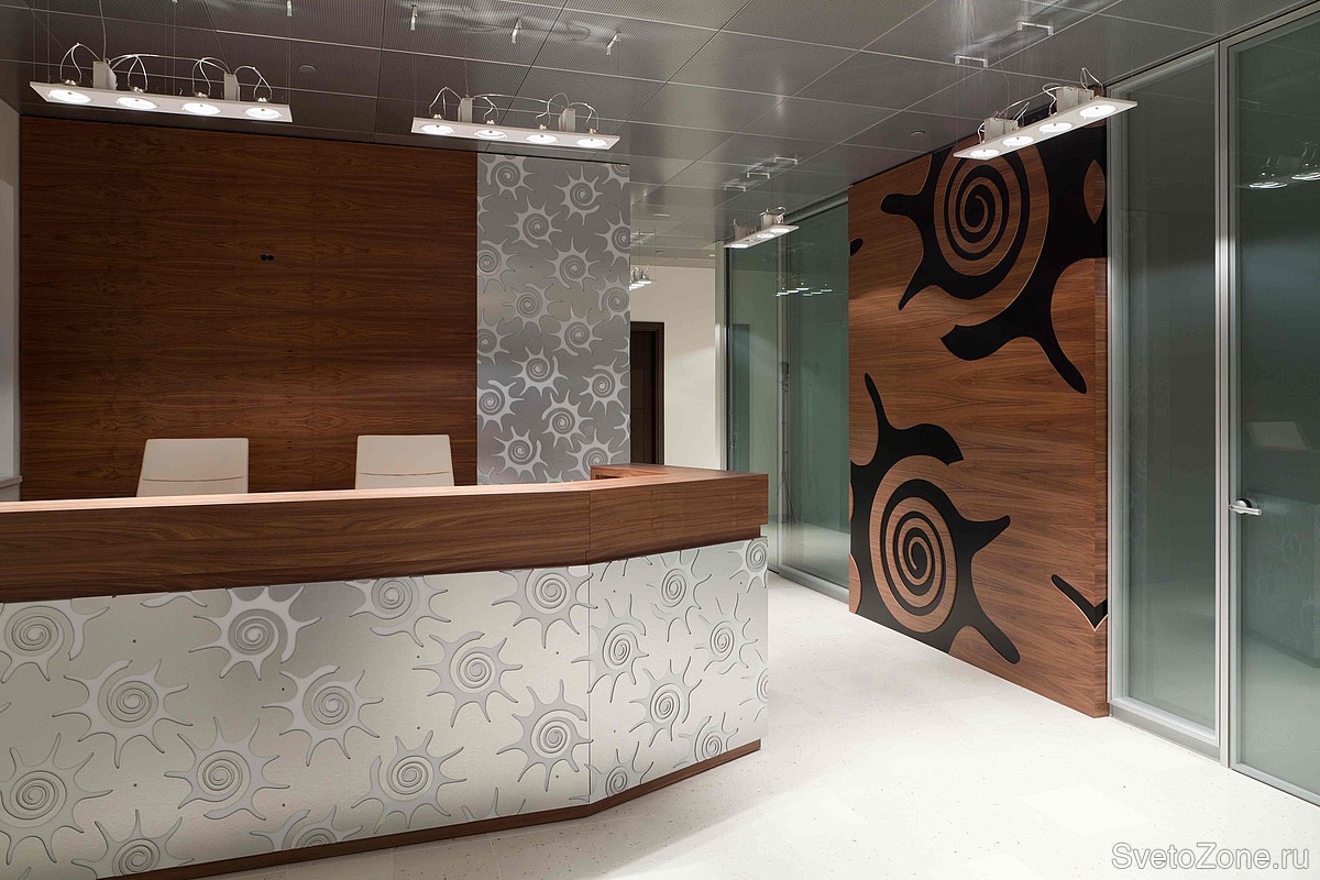 Комплексный проект по освещению интерьера офисного пространства и поставке мебели.