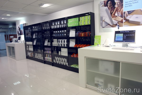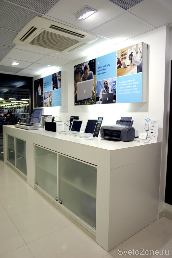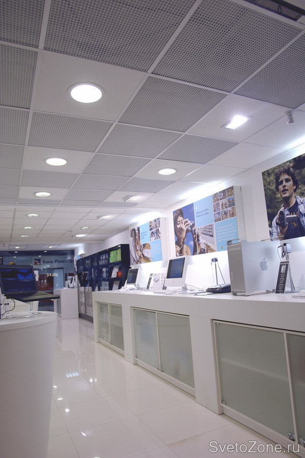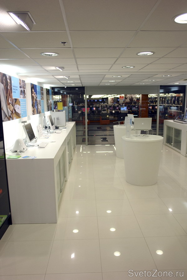 Перед компанией «МДМ-Лайт» была поставлена задача – подобрать подходящее осветительное оборудование и органично вписать его в фирменный стиль Apple.