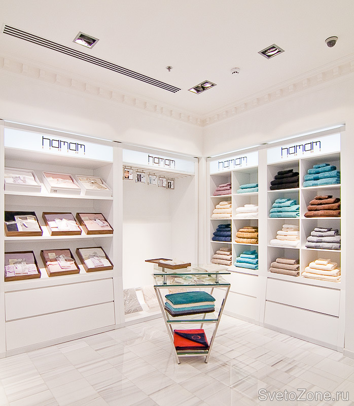 Компания ТРИНОВА выполнила работы по освещению магазина HAMAM, расположенного по адресу: г. Москва, 66-й км ТВЦ "Крокус Сити Молл", этаж 2, помещение №137.
