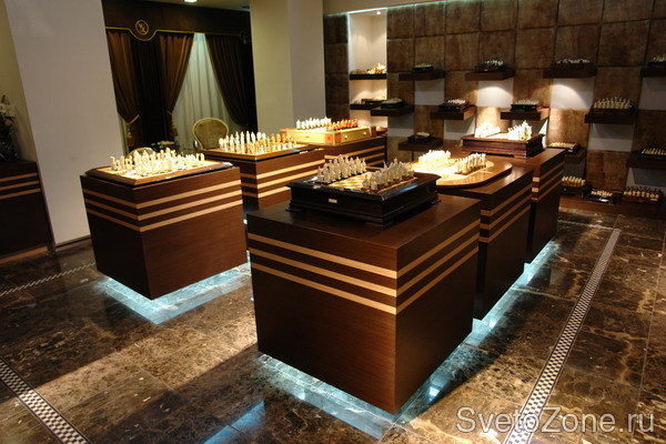 Где мы? Вы в первом в мире шахматном бутике «Шахматы Карпова». Созданные шахматные наборы, представленные в бутике – поистине произведение искусства сравнимые с экспонатами музеев Москвы и Питера.