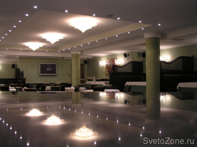 Проектирование и установка светодиодных приборов интерьерного и экстерьерного освещения бельгийской компании LDI для Отеля-ресторана «Атон» в г. Краснодар. Оборудование системы фоновой музыкальной трансляции. Инсталляция профессионального светового (Genius, Италия) и звукового (GAE, Германия) оборудования сцены и зала в ресторанном комплексе. |