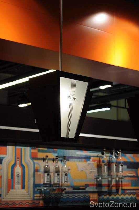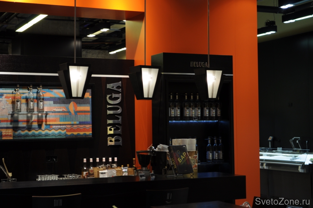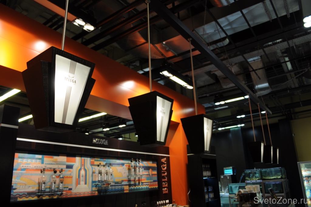 По индивидуальному проекту были изготовлены и смонтированы светильники в фирменном стиле БЕЛУГА.