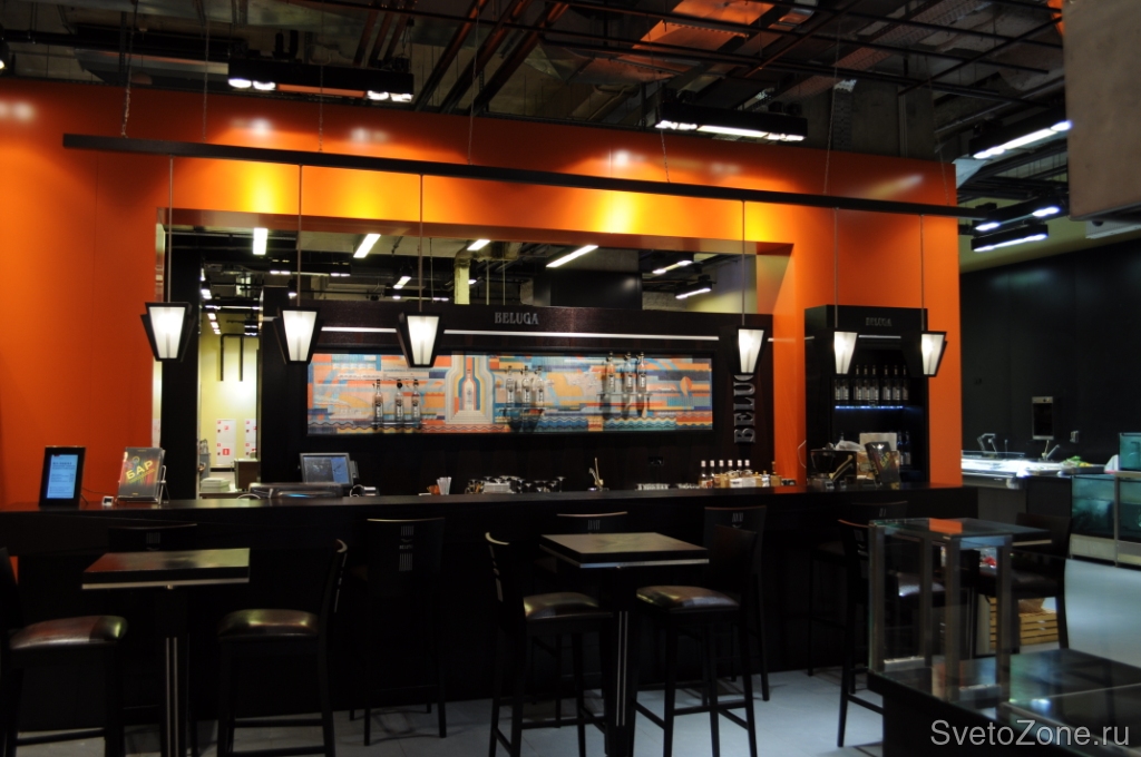 Компания ТРИНОВА и ЛюксФорм совместно с рекламным агентством ICE Promotion выполнила работы по декоративному освещению фирменных баров БЕЛУГА в магазинах премиум класса: Глобус Гурмэ Времена года и ЦУМ.