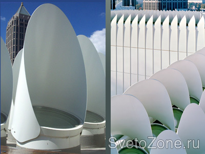 Объект удостоен наград Международной Ассоциации специалистов по проектированию освещения. В художественных галереях, расположенных на верхнем уровне здания, проектом предусмотрено устройство нескольких сотен куполообразных фонарей верхнего света для предотвращения попадания прямых солнечных лучей в галереи, а также для обеспечения должного уровня естественного освещения произведений искусства. |