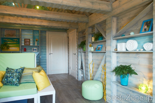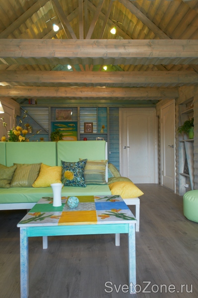 «Солнечный зайчик» - реализованный проект замечательного дизайнера Ирины Довгаль. По просьбе правнучки хозяев дачи, была изменена и обустроена мансарда.