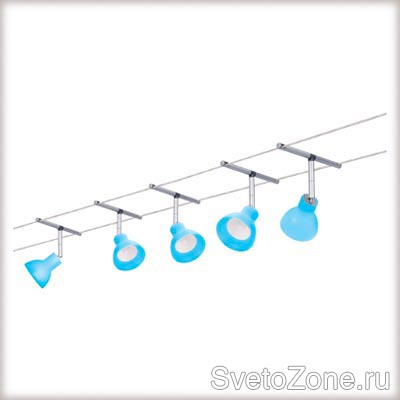 Использованные светильники в программе — серия Wire Systems (Тросовая система на 12V), артикул в каталоге — 974.41 (Spice Chili, Светло-синий), 974.42 (Spice Chili, Светло-зеленый).