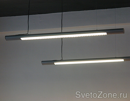 Так как технические особенности потолка не позволяют использовать встраиваемые светильники, специалисты нашей компании использовали подвесные светильники и прожекторы на шинопроводе.