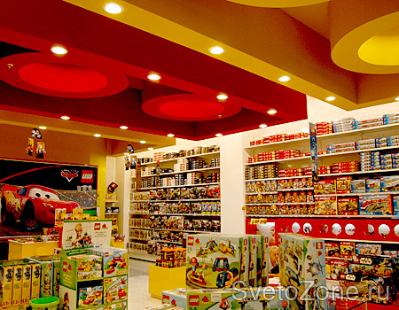 Правильная освещенность в магазине игрушек крайне важна, так как ничто не должно мешать и отвлекать маленьких посетителей от выбора, а хороший свет позволит им рассмотреть все детали.