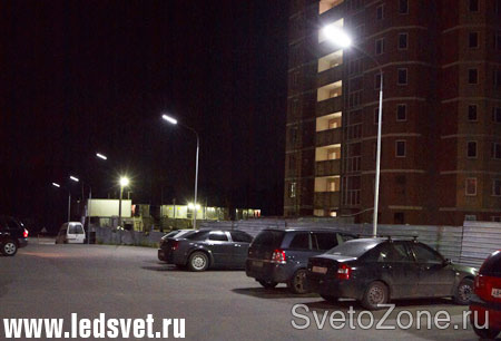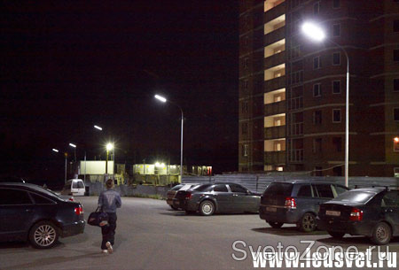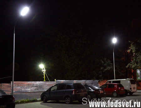 Сеть магазинов "Чистые материалы" г.Щелково оборудовала свои автостоянки и периметры своих складских комплексов светодиодными системами освещения. Были заменены светильники с лампой ДНаТ 150.