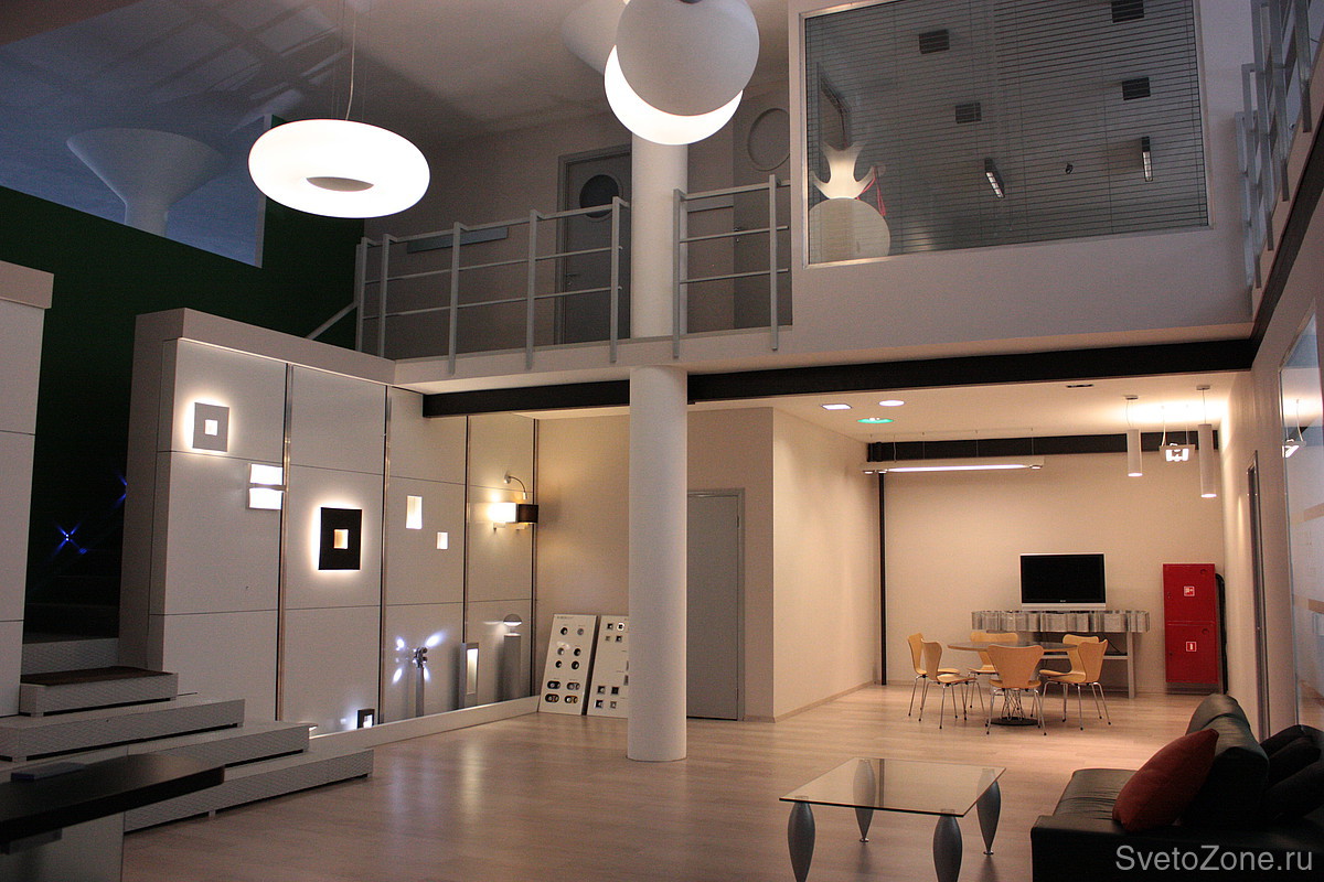 Дизайнерский свет в интерьерах, подвесные и потолочные светильники, нестандартное офисное освещение.