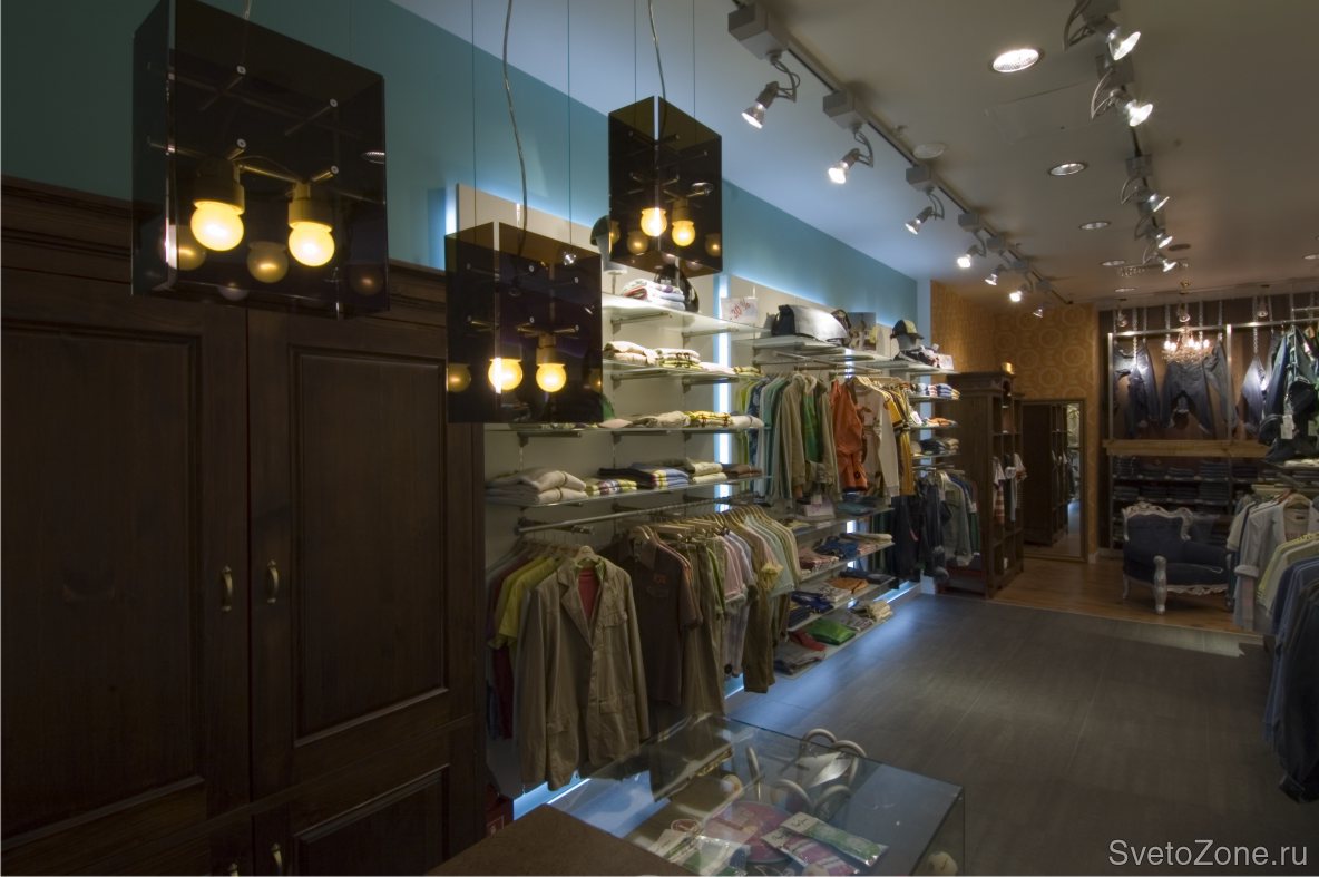 Интерьерное освещение магазина. Креативное решение в духе времени и в соответствии со стилем бренда.