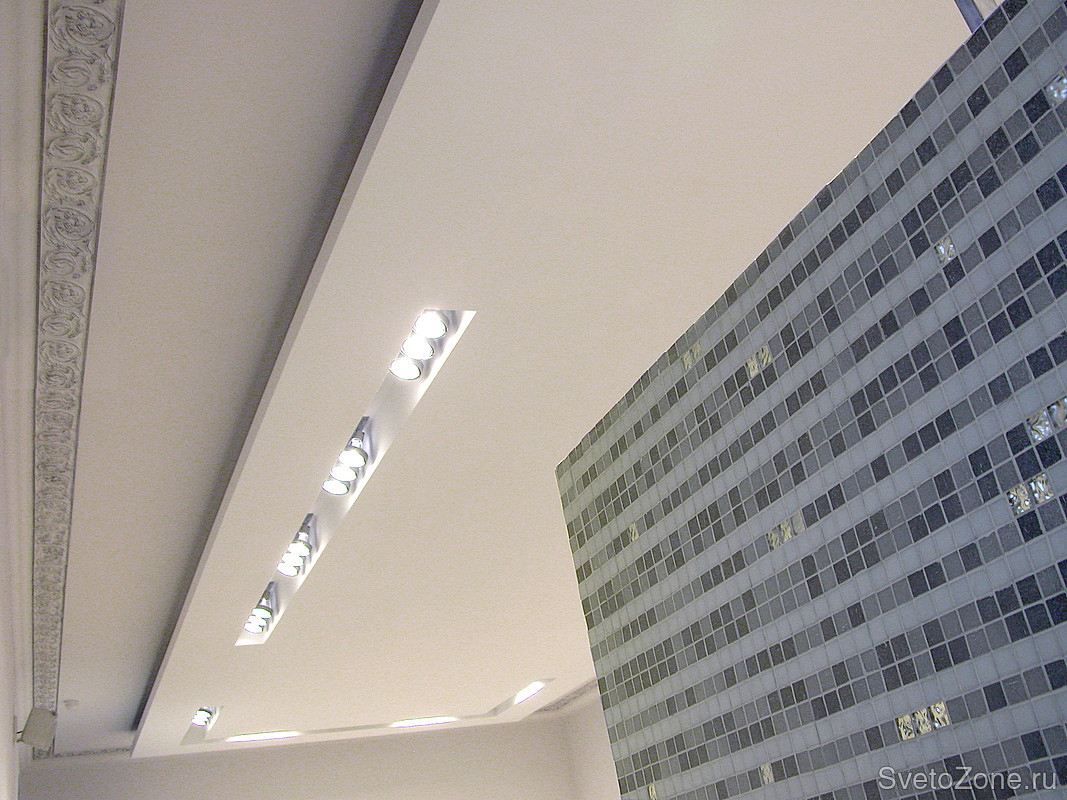 В проекте использовались потолочные системы освещения, настенные светильники Delta Light.