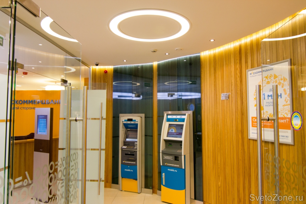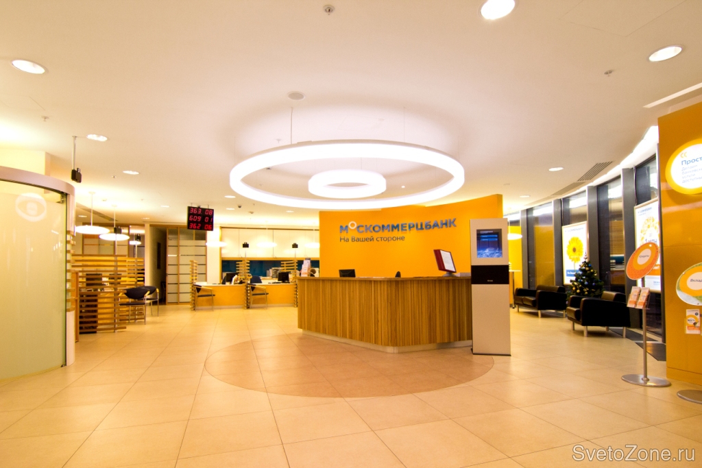 Компания ТРИНОВА выполнила работы по освещению двух отделений Банка МОСКОММЕРЦ: на ул.Беговая и на ул.Большая Дорогомиловская.