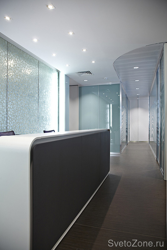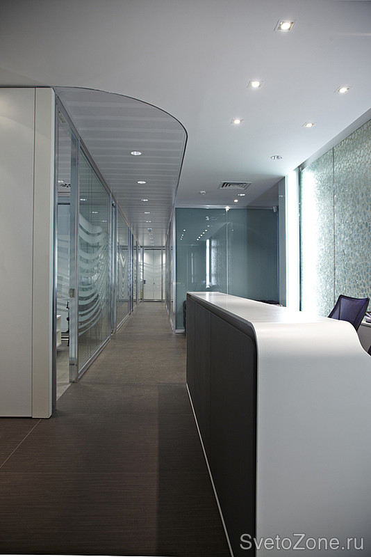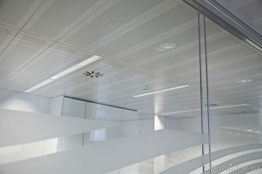 В проекте использованы модульные потолочные системы с интегрированными светильниками Ceilux. |